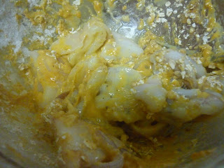 1/2 kilo sotong sederhana besar dipotong panjang datau bulat2, semangkuk oat, 5 sudu rempah goreng ayam adabi, 3 sudu kecil serbuk lada hitam, sedikit gandum 2 biji telur, garam, gula dan perasa secukupnya.